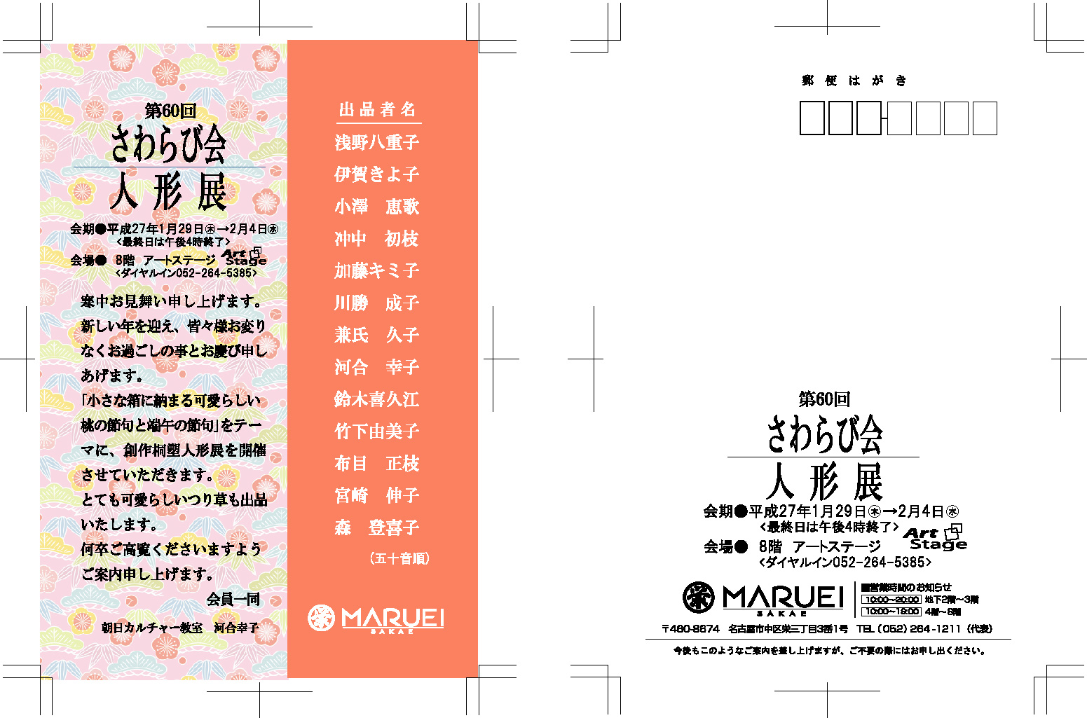 ←過去のおしらせ(月のご案内一覧) ← 催し案内blog一覧へ 〒460-0008 名古屋市中区栄3-3-1 丸栄百貨店8階 アートステージ 営業時間 午前10時~午後7時(催し最 終日は午後4時終了) ☎052-264 …
