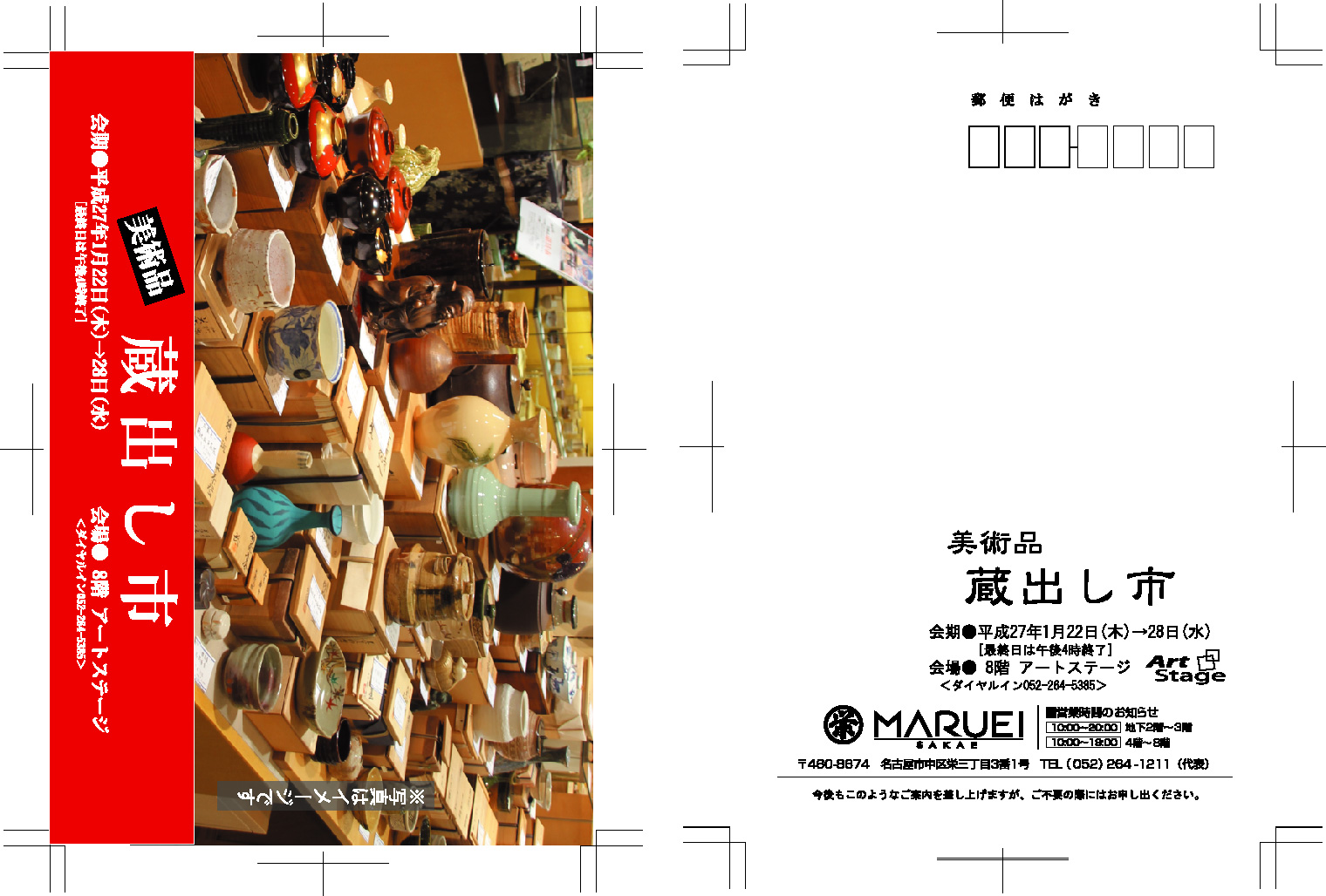 ←過去のおしらせ(月のご案内一覧) ← 催し案内blog一覧へ 〒460-0008 名古屋市中区栄3-3-1 丸栄百貨店8階 アートステージ 営業時間 午前10時~午後7時(催し最 終日は午後4時終了) ☎052-264 …