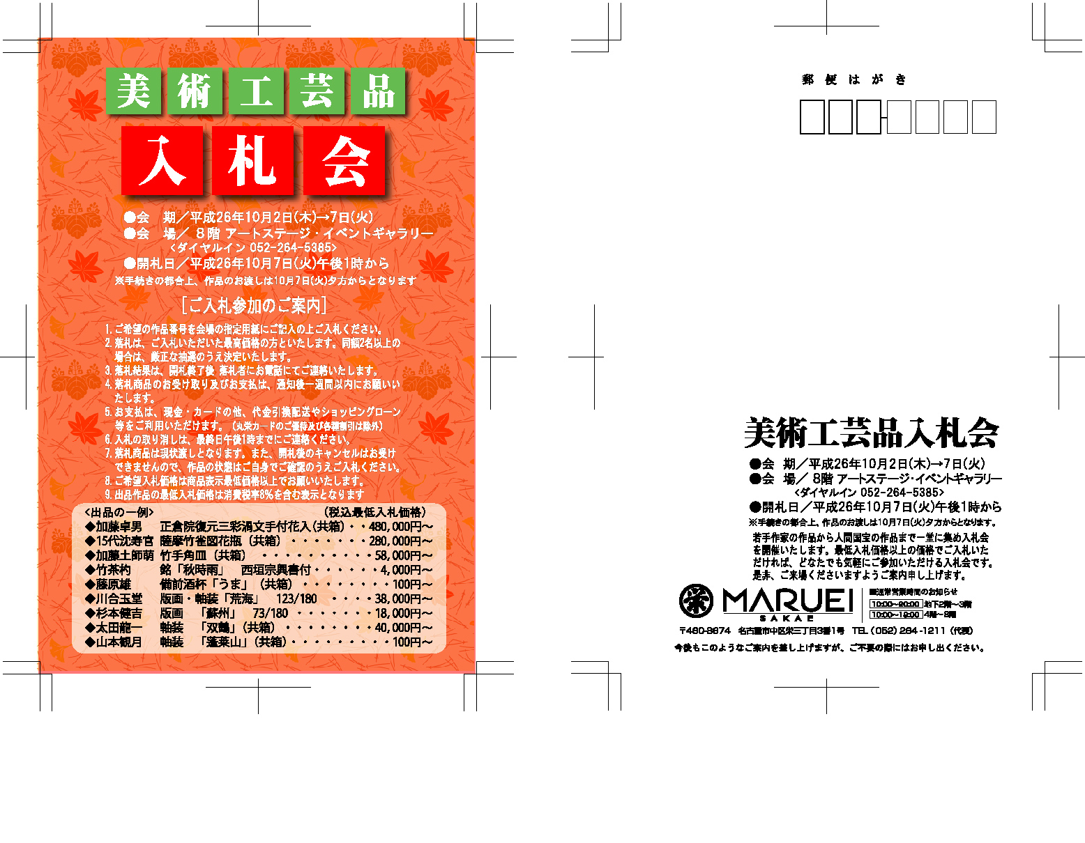←過去のおしらせ(月のご案内一覧) ← 催し案内blog一覧へ 〒460-0008 名古屋市中区栄3-3-1 丸栄百貨店8階 アートステージ 営業時間 午前10時~午後7時(催し最 終日は午後4時終了) ☎052-264 …