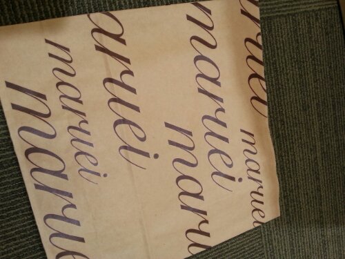 クロワッサンに丸栄の手提げ袋がいっぱい。